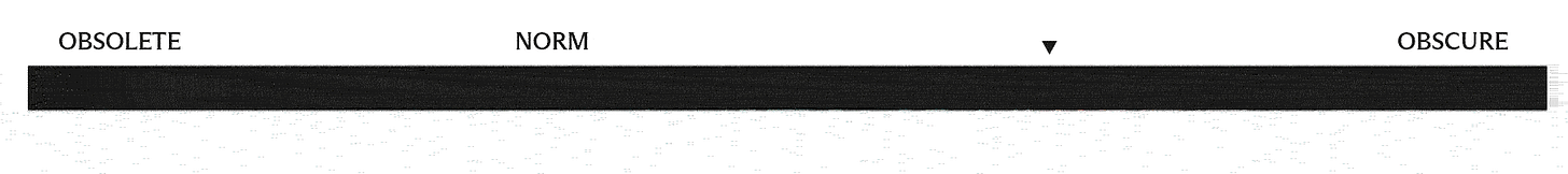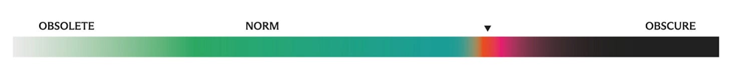 On the right: obscure. So novel it’s incomprehensible. Pure surprise.